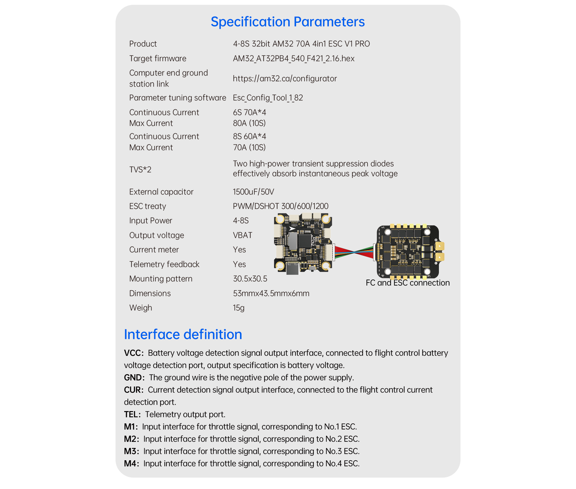 \ 4-8S 32bit am32 70A 4in1 ESC V1 PRO