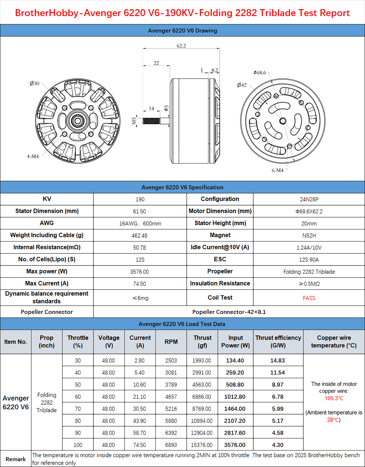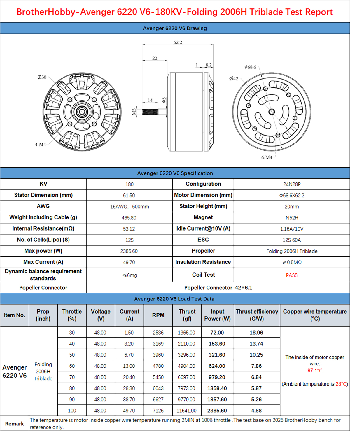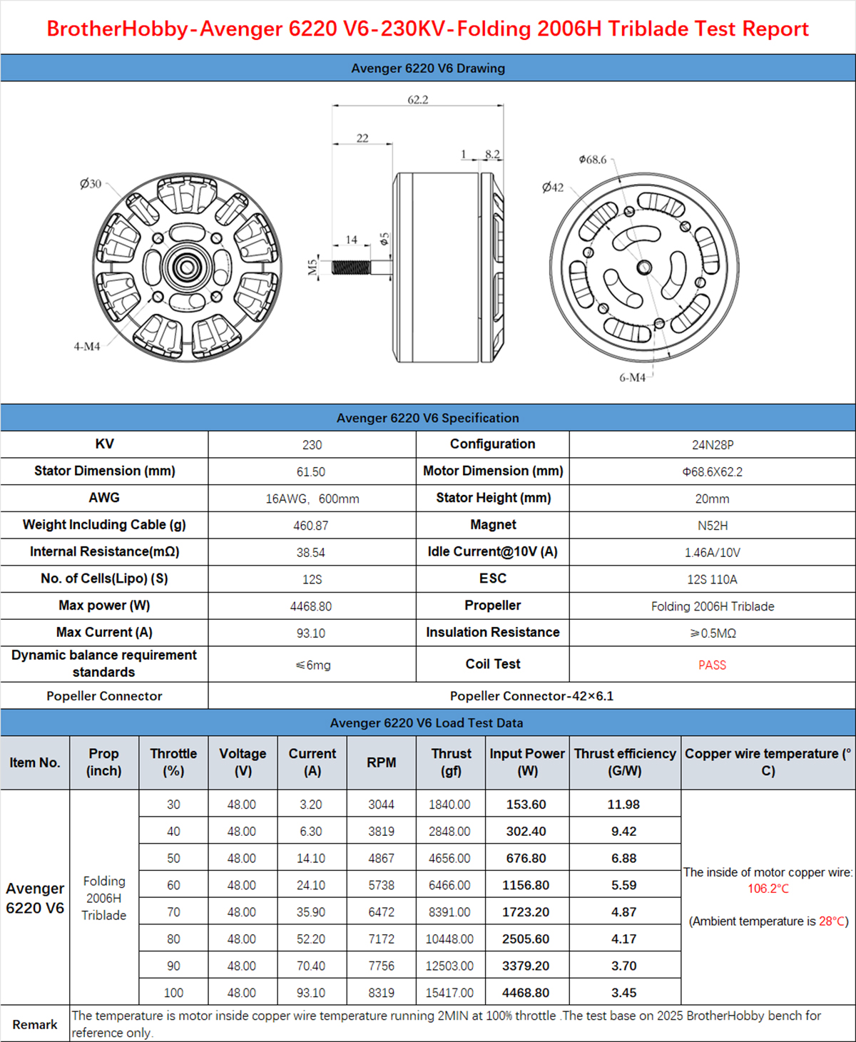 Avenger 6220 V6 180KV/190KV/230KV Motor(CW)