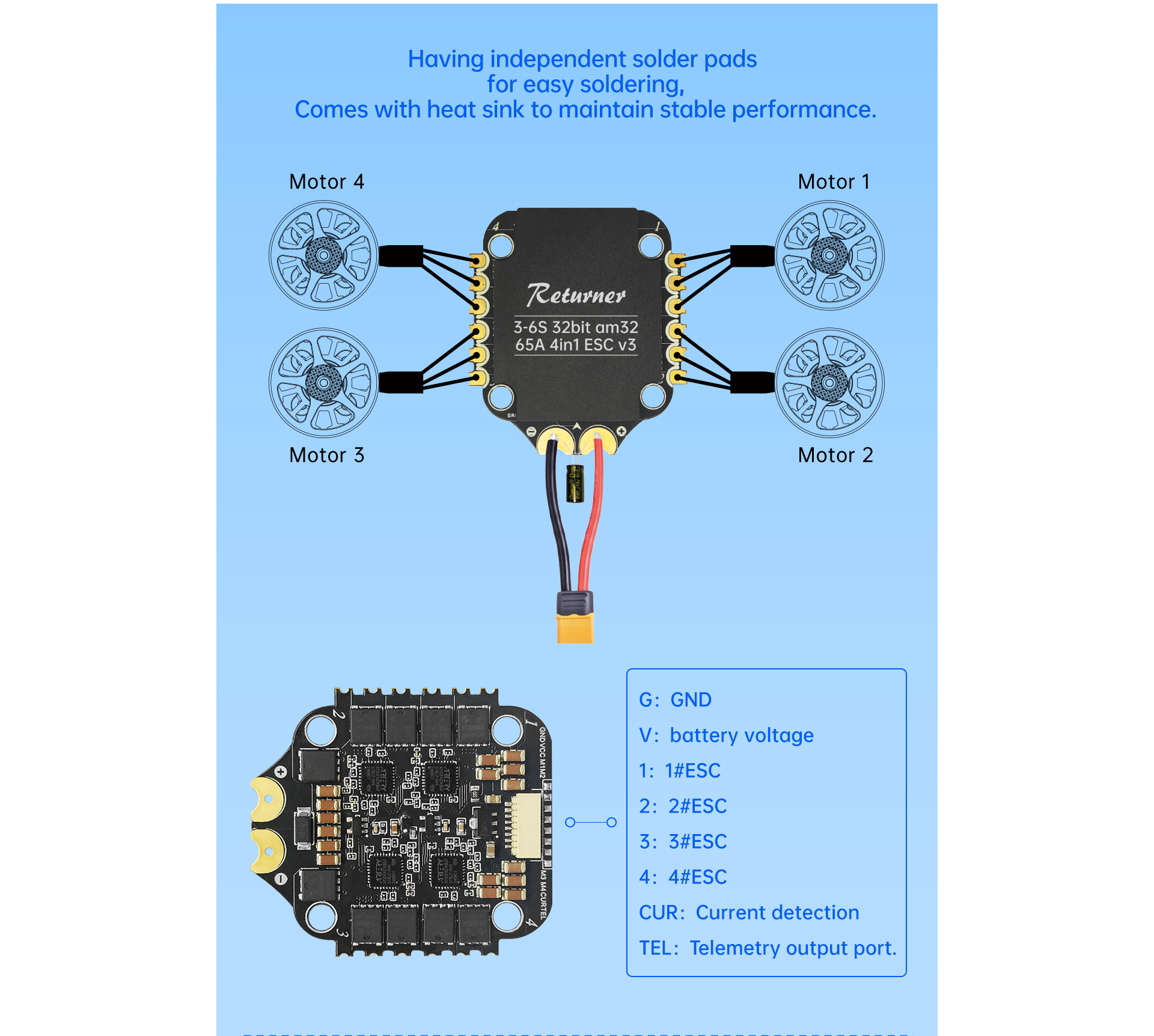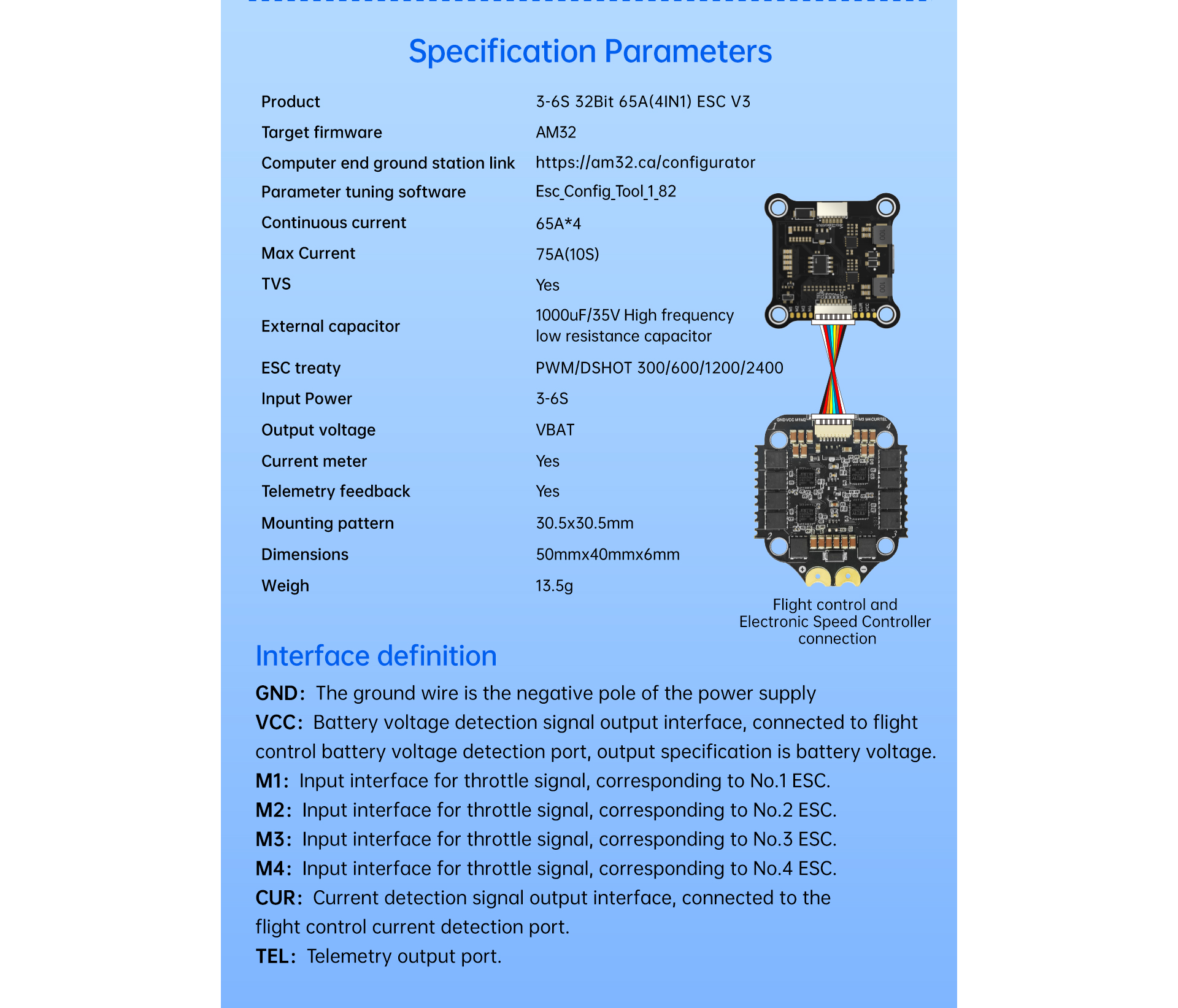 \ 3-6S 32Bit AM32 65A(4IN1) ESC V3