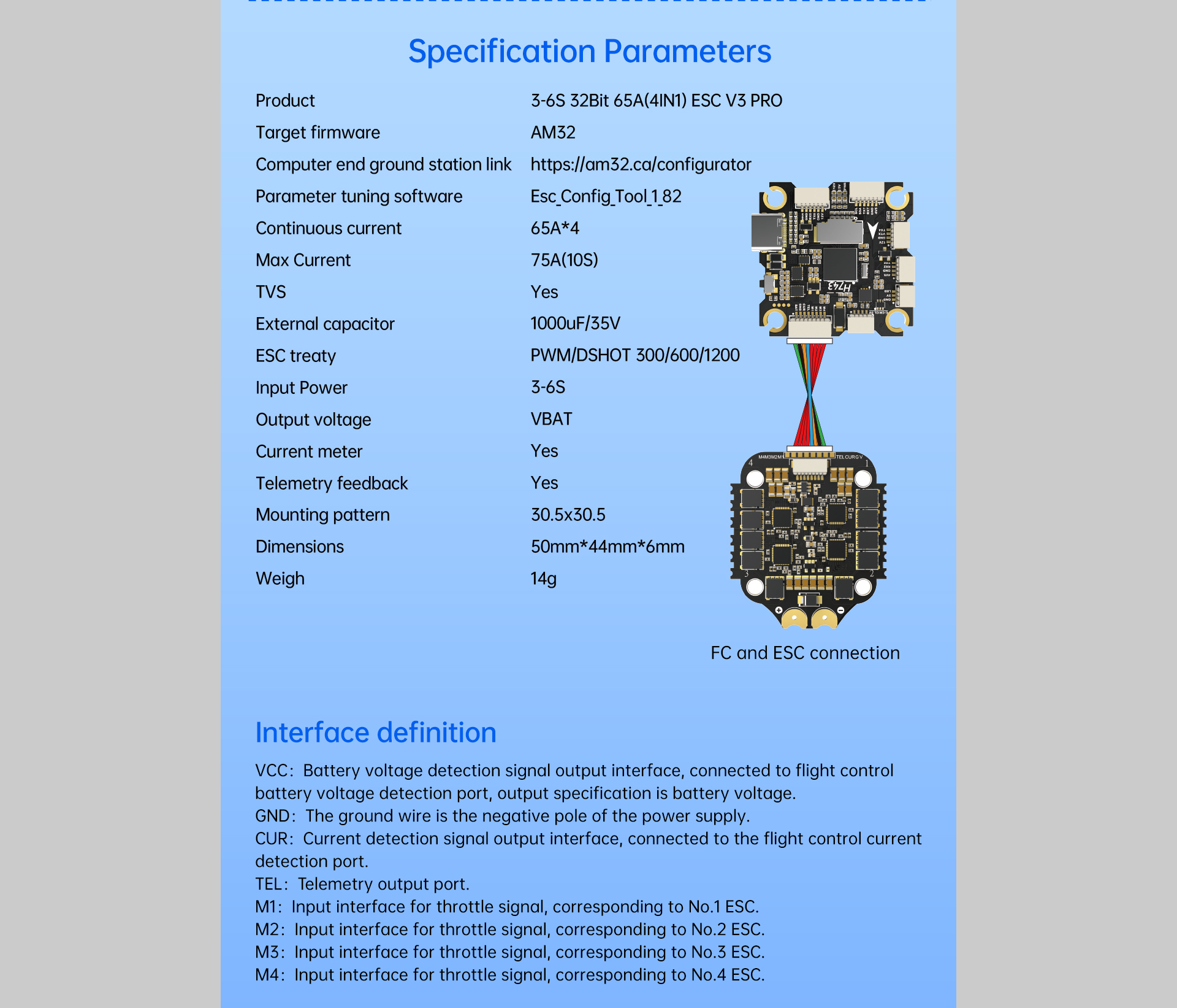 \ 3-6S 32Bit AM32 65A(4IN1) ESC V3 PRO