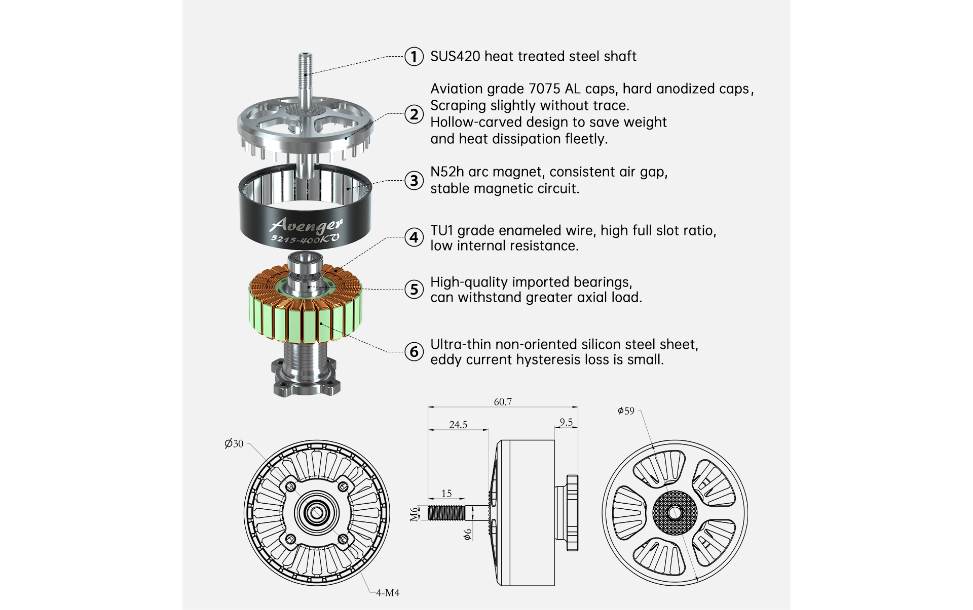Avenger 5215 360KV/400KV/415KV Motor(CW)