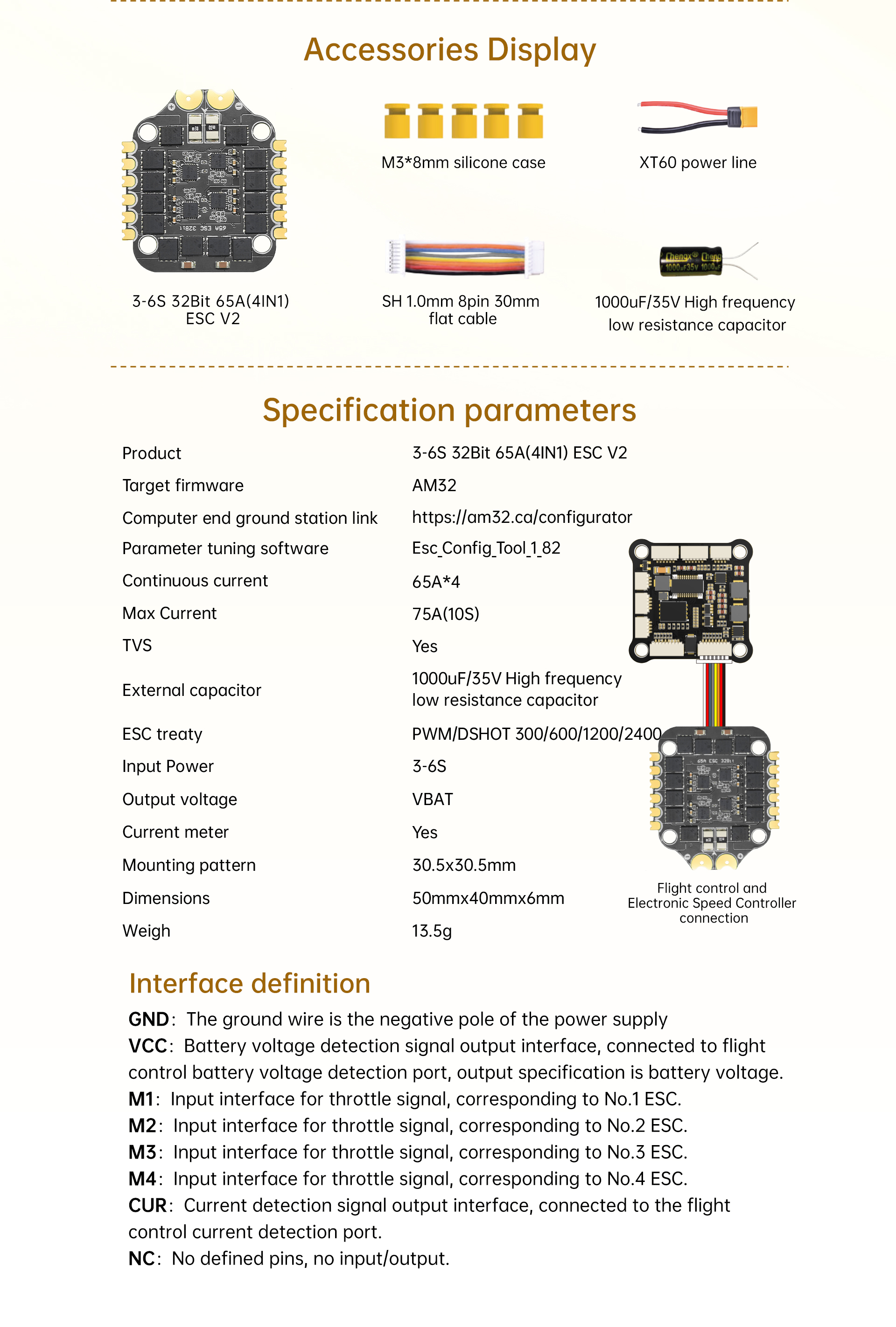 \ Returner 3-6S 32Bit AM32 65A(4IN1) ESC V2